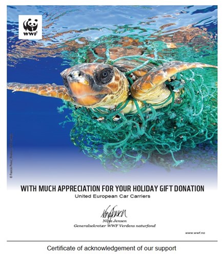 We are pleased to share that UECC had donated NOK 25,000 on behalf of all of us working in UECC to WWF (World Wide Fund for Nature) to support their work with a focus on reducing plastic waste in the oceans.